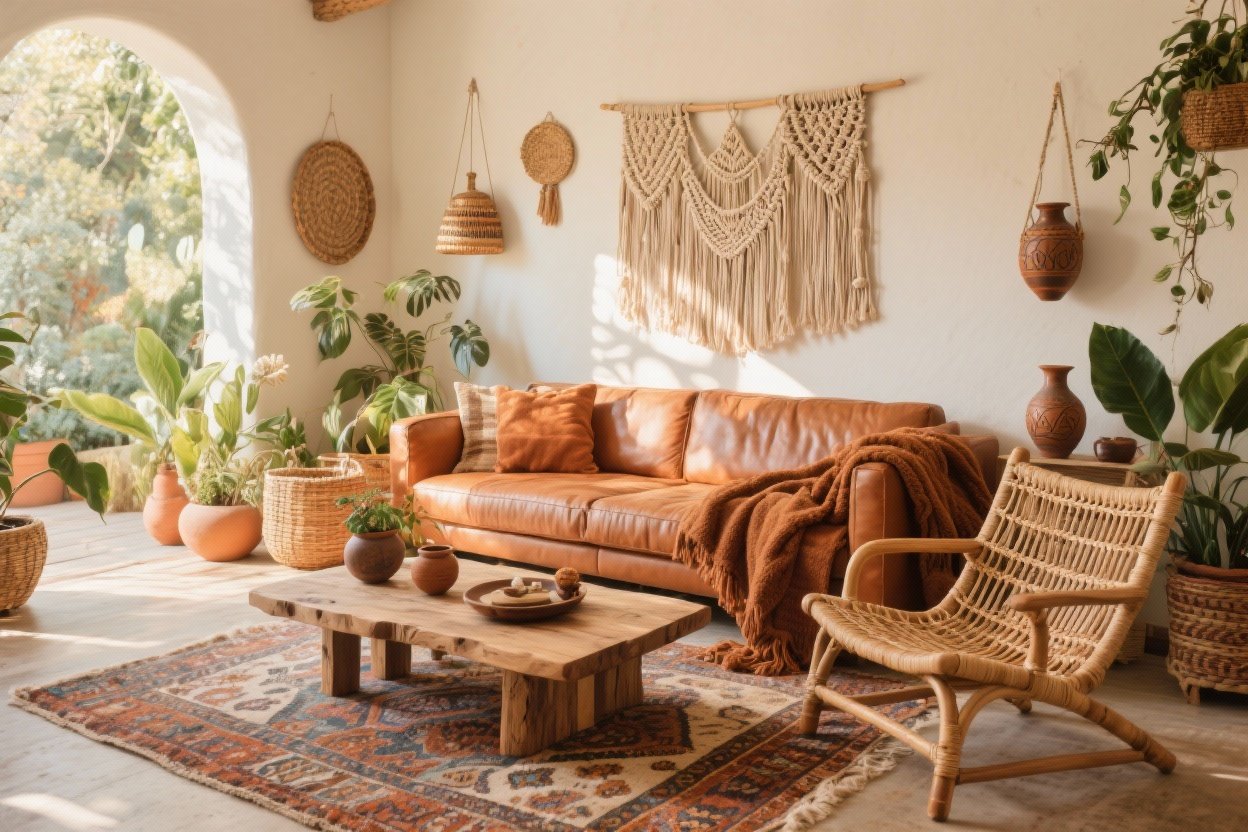 Boho style is big on organic materials. Wicker, rattan, cane, raw wood, stone, and clay all add warmth and texture that feel timeless, not trendy.